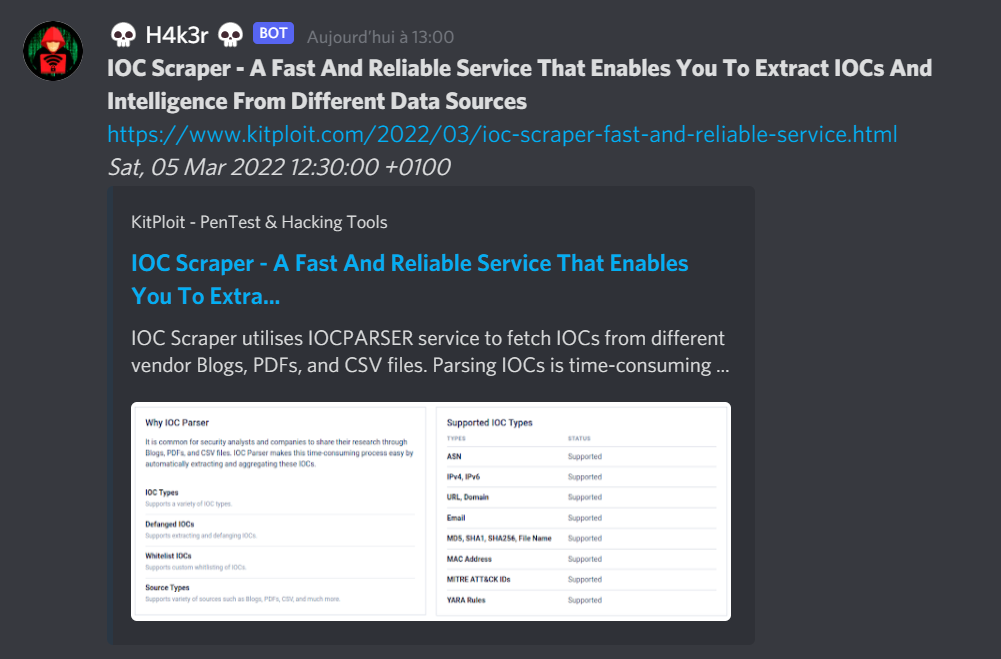 Avec un ami, nous avons mis en place un système de veille via discord, les webhooks et les flux RSS.