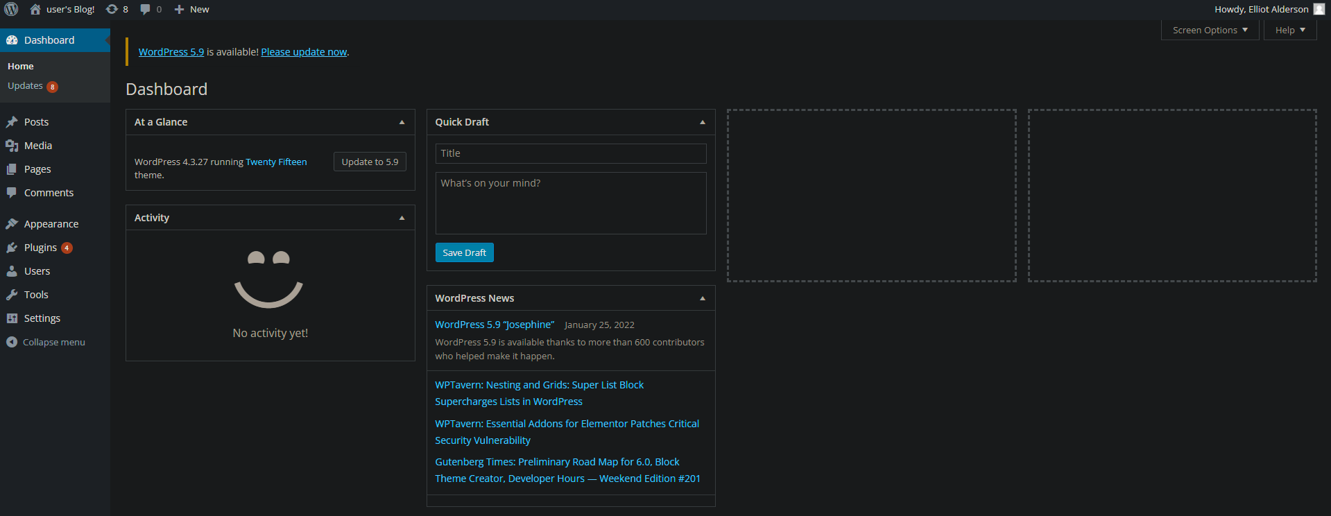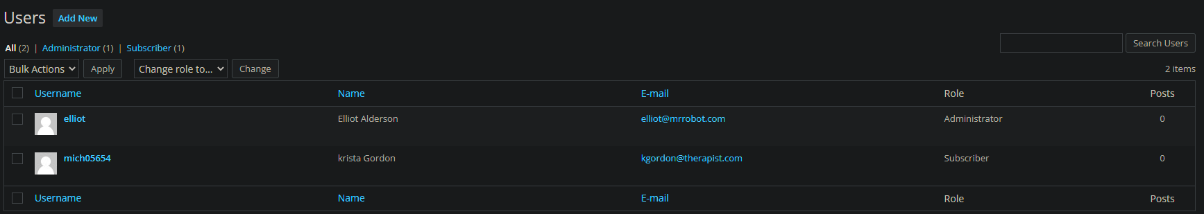 L’utilisateur elliot est administrateur du WP