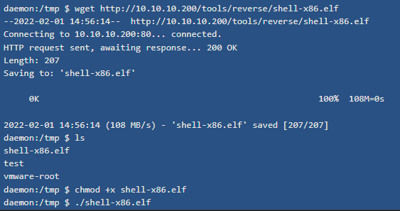 On a les droits dans /tmp/ donc on y telecharge notre reverse :